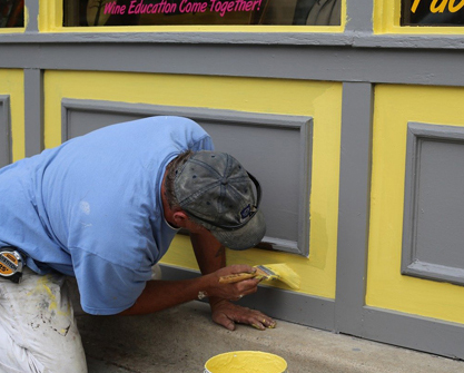 Surface sanding with “Dry Wall Sander Machine” to remove previous loose paint.